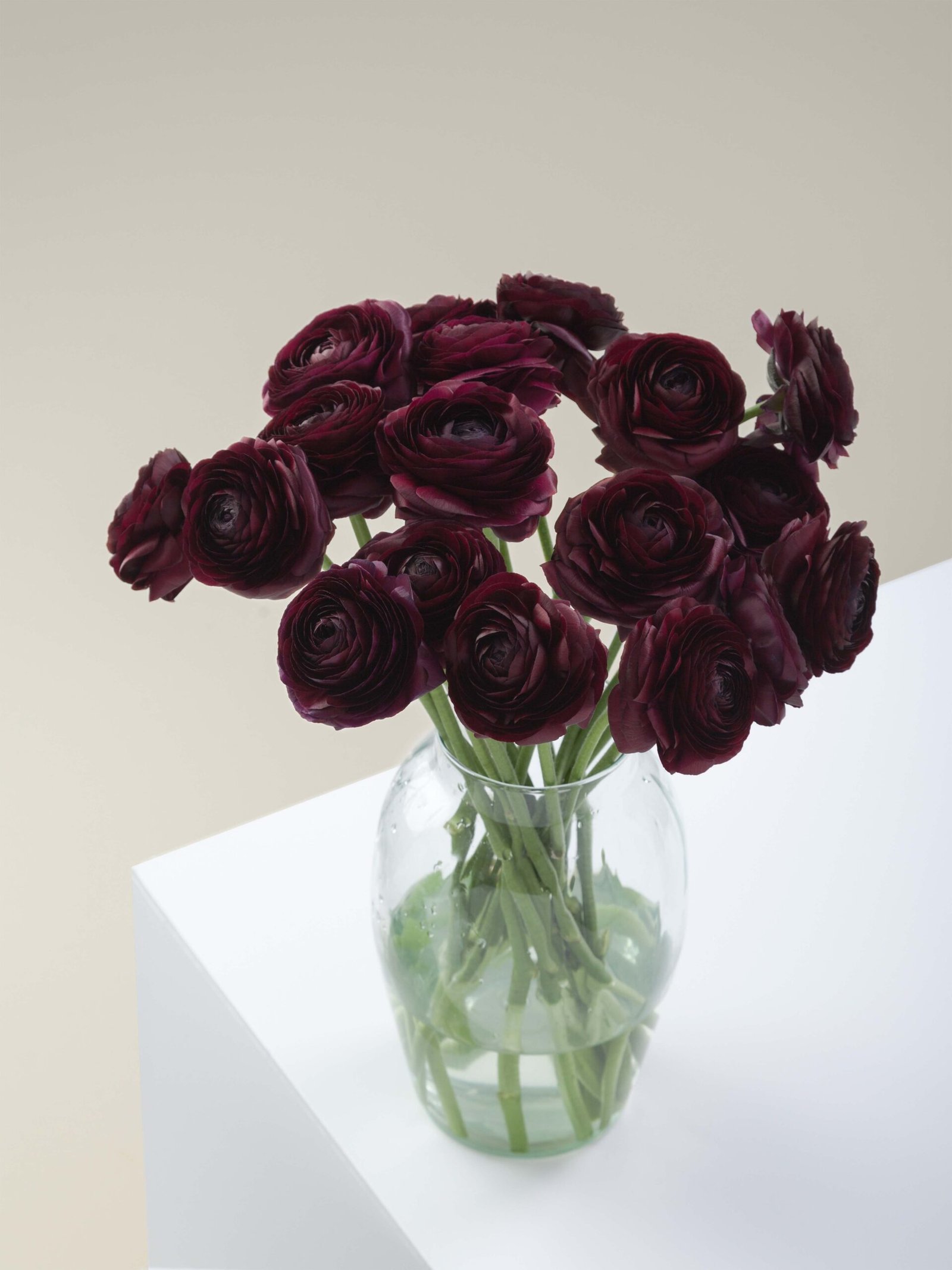 Rafinuotas vėdrynas, sluoksniuojantis tamsiai violetinius atspalvius vyno spalvos žiedui.